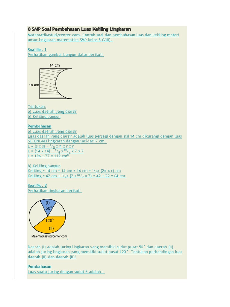 Soal Luas Dan Keliling Lingkaran Ini Terdiri Dari 20 Soal Pilihan Ganda Dan 10 Soal Uraian.